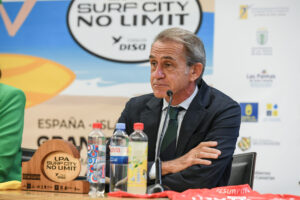 Hoy se ha presentado con la asistencia de Aridany Romero, consejero de Deportes del Cabildo de Gran Canaria, Isabel Mena, consejera de Política Social y Accesibilidad del Cabildo de Gran Canaria, la concejala de Deportes del Ayuntamiento de Las Palmas de Gran Canaria, Carla Campoamor, Ángel Sabroso, viceconsejero de Deportes del Gobierno de Canarias, Héctor Mateo Castañeyra, director general de Infraestructura, Sostenibilidad y Calidad Turística de la Consejería de Turismo y Empleo del Gobierno de Canarias, Sara Mateos, directora de la Fundación DISA y Vicente Pérez, director del LPA Surf City No Limit Fundación DISA 2024.